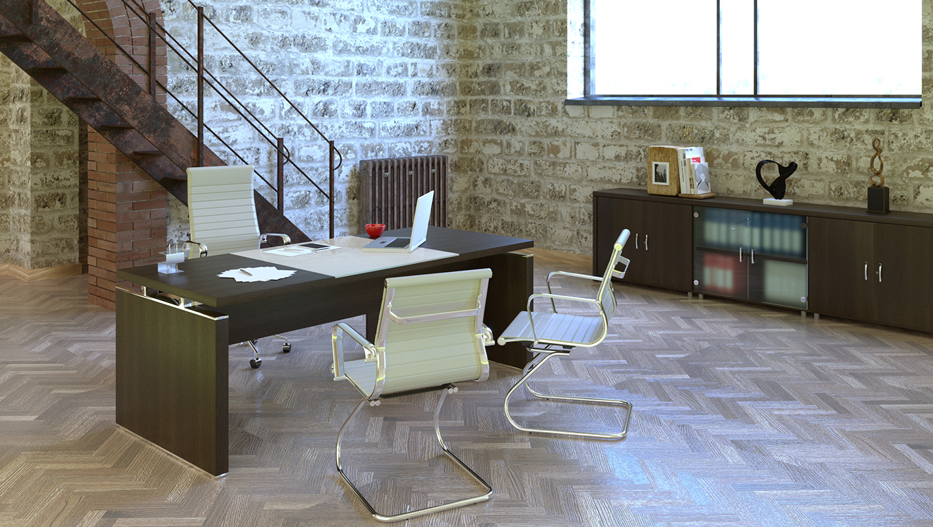 Tapa de mesa fabricada en bilaminado de 40mm. Bases fabricadas en bilaminado de 60 mm.