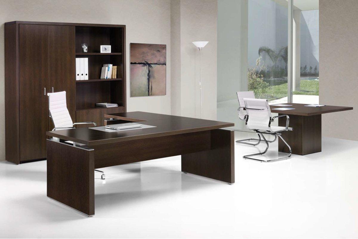 Tapa de mesa fabricada en bilaminado de 40mm. Bases fabricadas en bilaminado de 60 mm. Con vade de vidrio 8 mm cajeado en tapa de mesa.