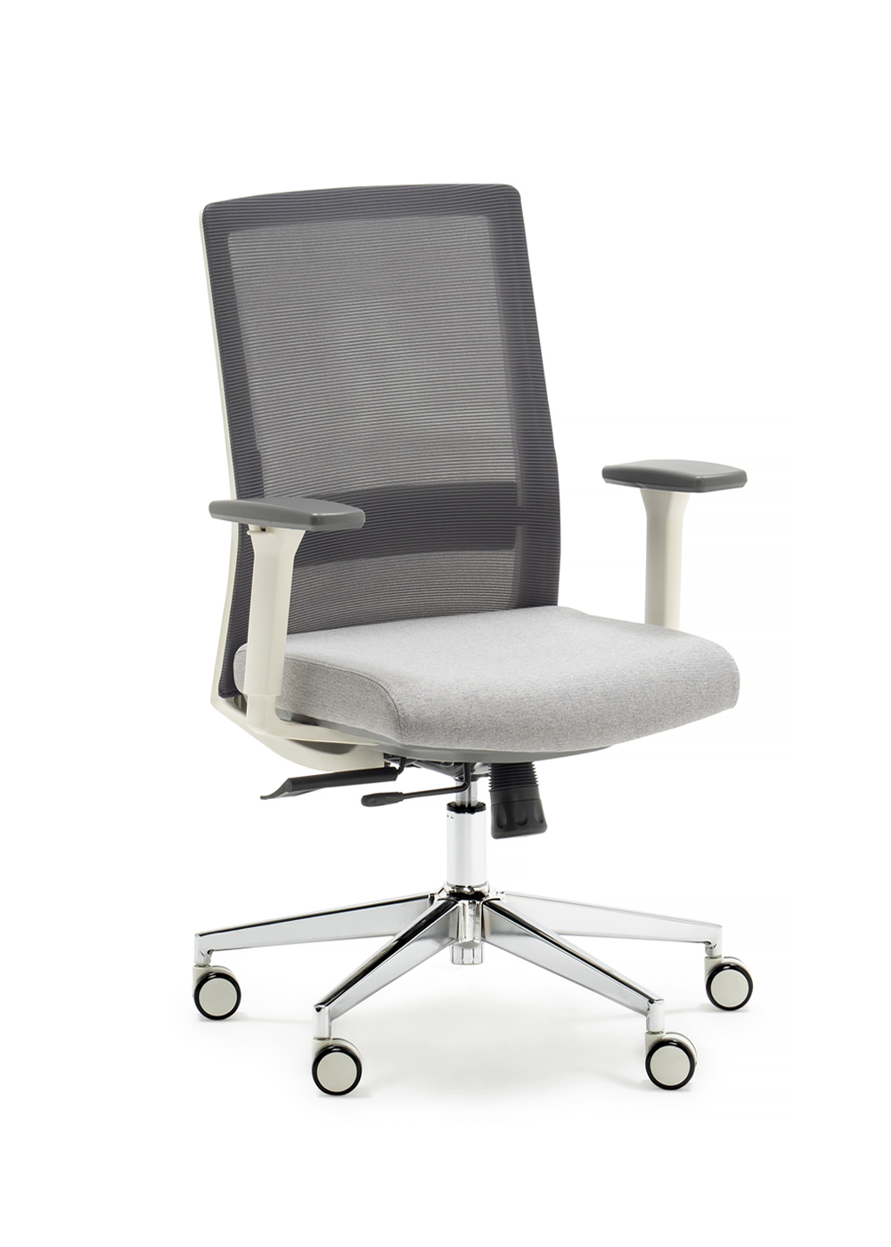 Respaldo tapizado en malla efecto tela, color blanco/gris.